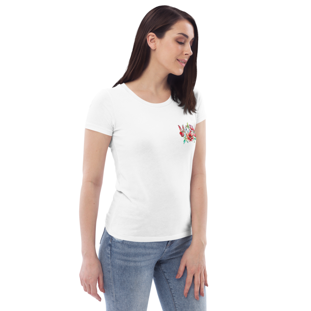The women's fitted tee is a must-have. It's high-quality, super comfortable, and has form-fitting qualities. Best of all, it's made of 100% organic ring-spun combed cotton, making it an eco-friendly choice!